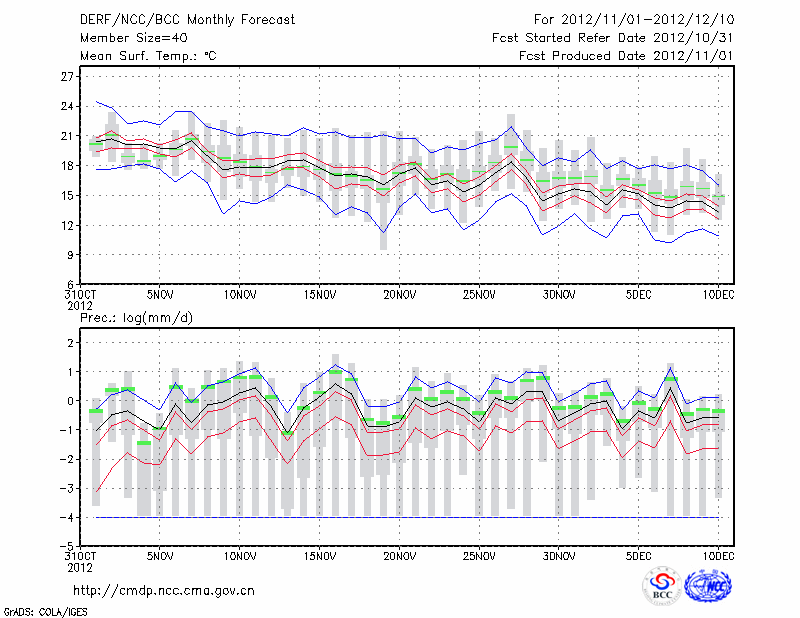 福 州 (LAT:26.08 LON:119.28) 2012-11-01        预测