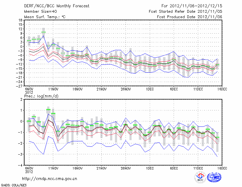 佳 木 斯 (LAT:46.49 LON:130.17) 2012-11-06        预测