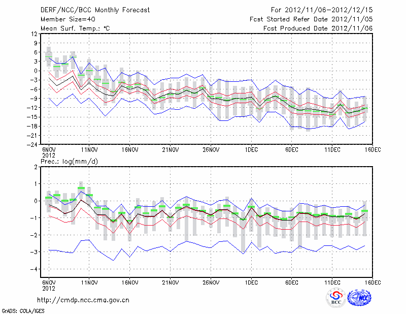 哈 尔 滨 (LAT:45.75 LON:126.77) 2012-11-06        预测