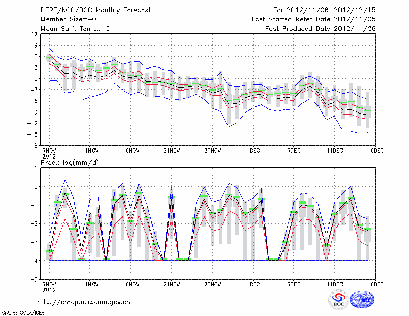 哈 密 (LAT:42.82 LON:93.52) 2012-11-06        预测
