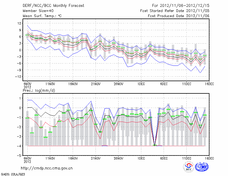延 安 (LAT:36.60 LON:109.50) 2012-11-06        预测
