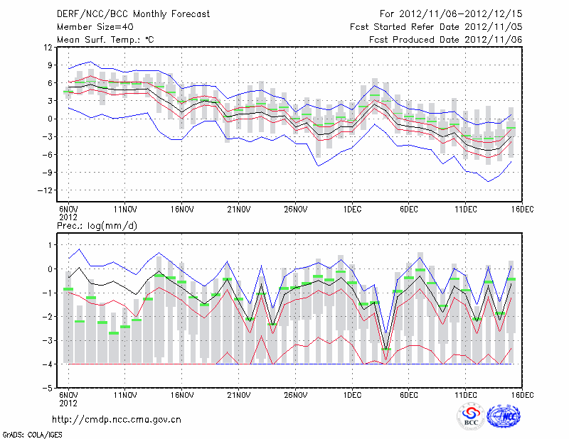 西 峰 镇 (LAT:35.73 LON:107.63) 2012-11-06        预测