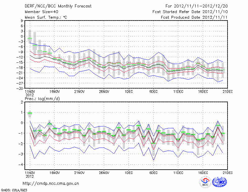 嫩 江 (LAT:49.17 LON:125.23) 2012-11-11        预测