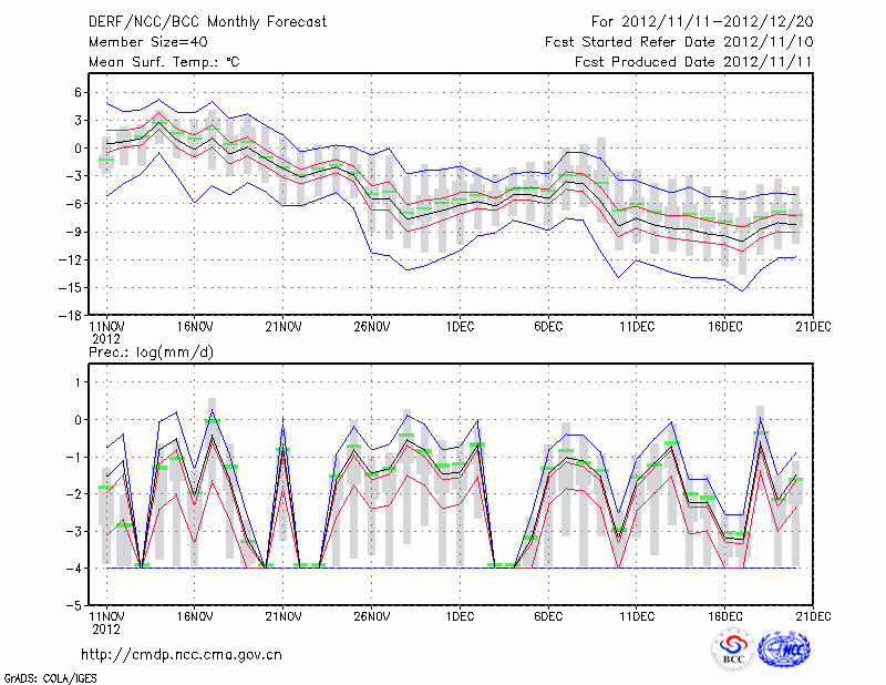 哈 密 (LAT:42.82 LON:93.52) 2012-11-11        预测