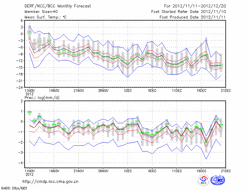 牡 丹 江 (LAT:44.57 LON:129.60) 2012-11-11        预测