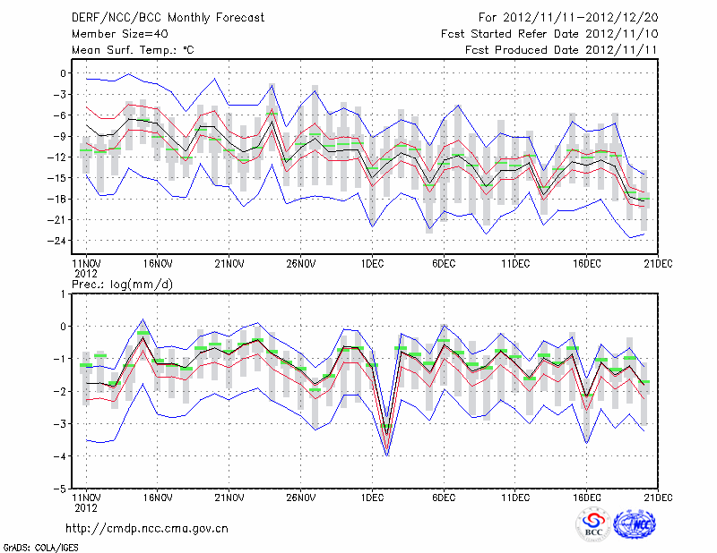 锡林浩特 (LAT:43.95 LON:116.07) 2012-11-11        预测