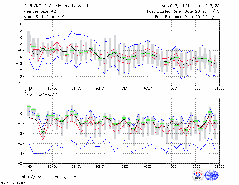 长 春 (LAT:43.90 LON:125.22) 2012-11-11        预测