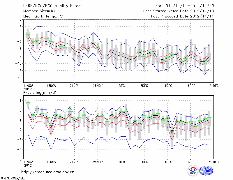延 吉 (LAT:42.88 LON:129.47) 2012-11-11        预测