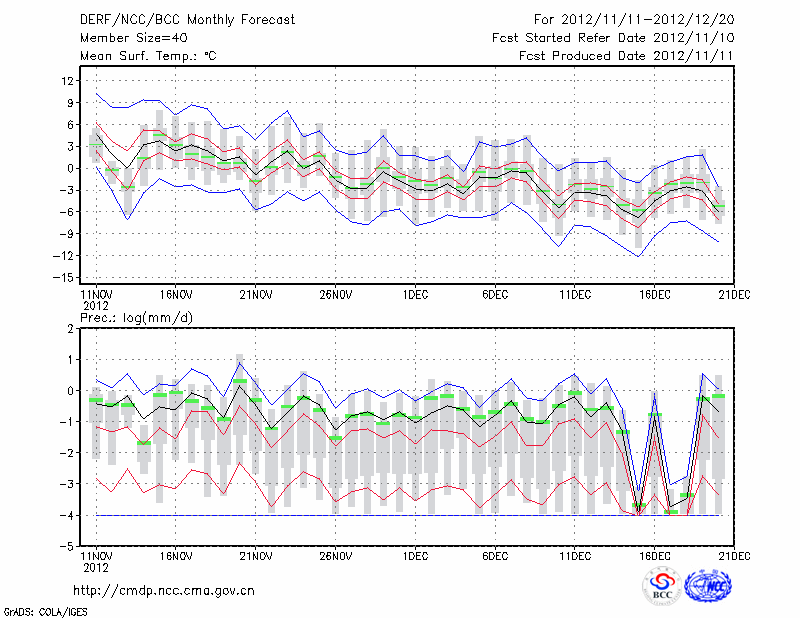 丹 东 (LAT:40.05 LON:124.33) 2012-11-11        预测