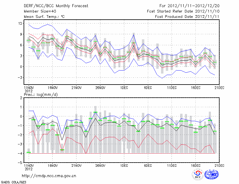 潍 坊 (LAT:36.70 LON:119.08) 2012-11-11        预测