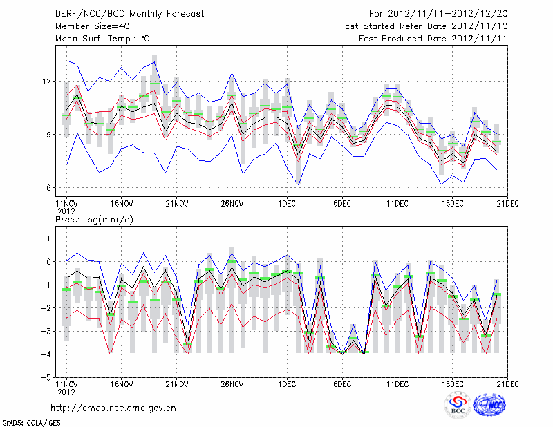 丽 江 (LAT:26.83 LON:100.47) 2012-11-11        预测