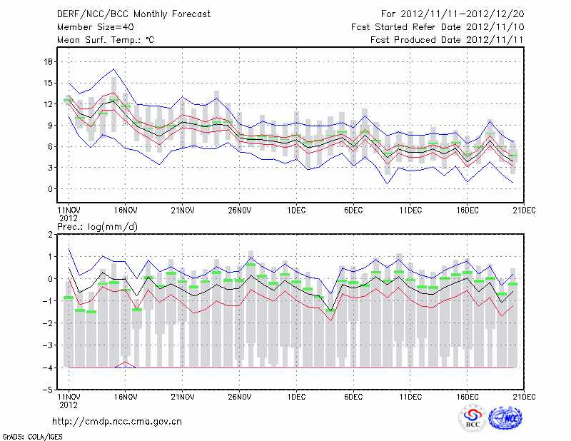 钟 祥 (LAT:31.17 LON:112.57) 2012-11-11        预测