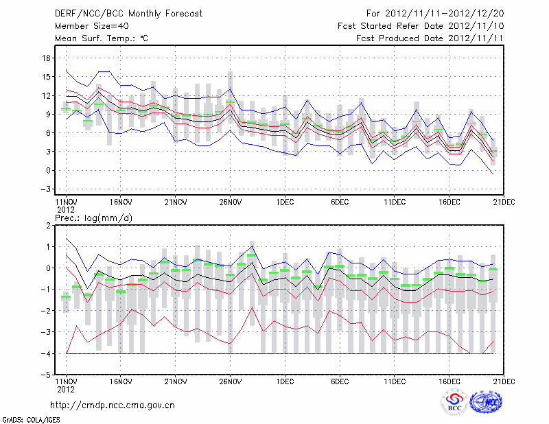 东 台 (LAT:32.87 LON:120.32) 2012-11-11        预测