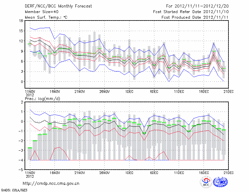 合 肥 (LAT:31.87 LON:117.23) 2012-11-11        预测