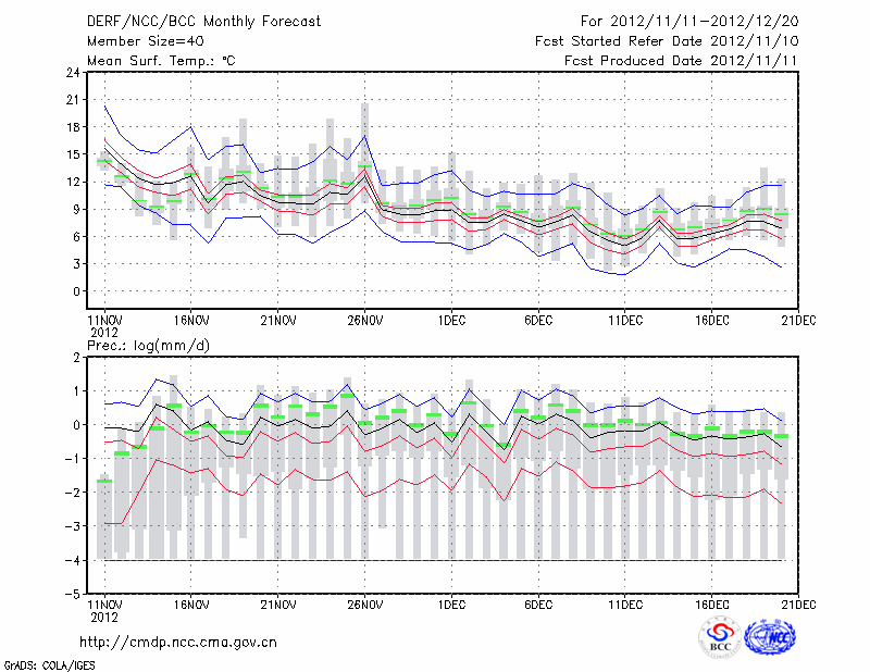 南 昌 (LAT:28.60 LON:115.92) 2012-11-11        预测