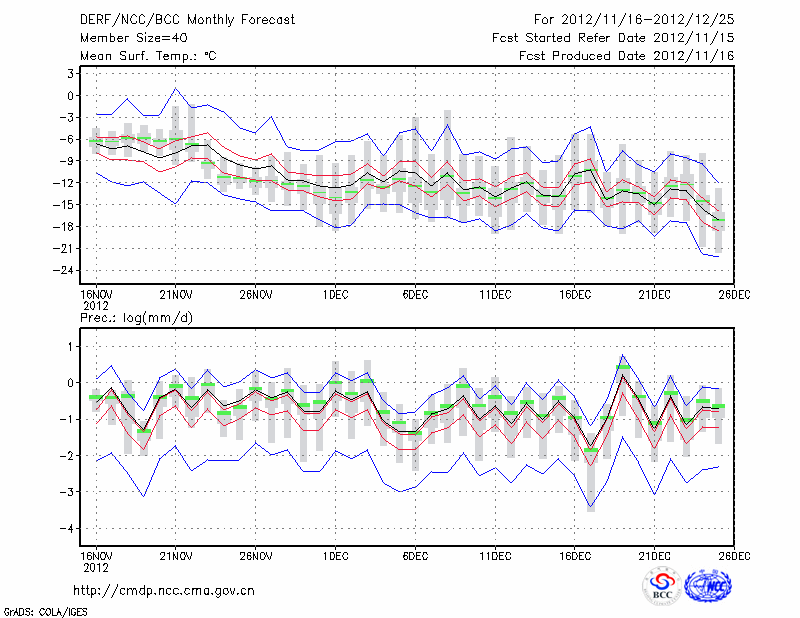 牡 丹 江 (LAT:44.57 LON:129.60) 2012-11-16        预测