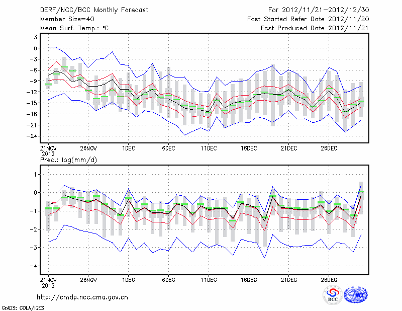 哈 尔 滨 (LAT:45.75 LON:126.77) 2012-11-21        预测