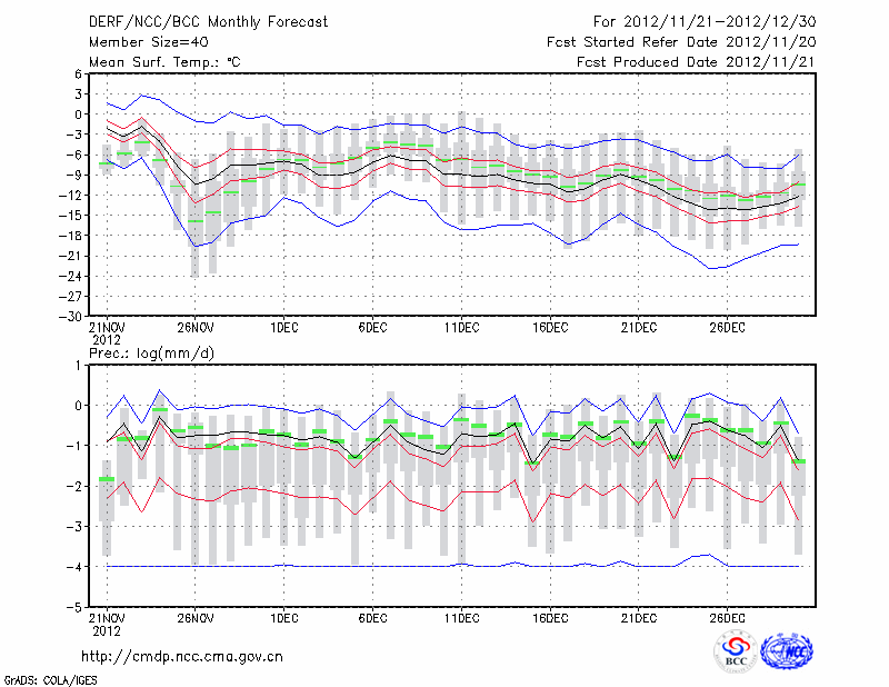 乌 苏 (LAT:44.43 LON:84.66) 2012-11-21        预测