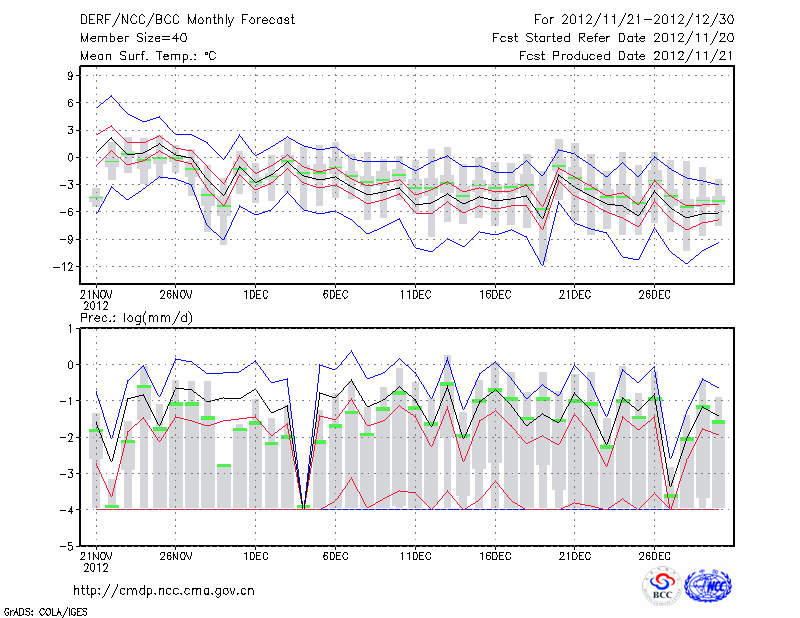 延 安 (LAT:36.60 LON:109.50) 2012-11-21        预测