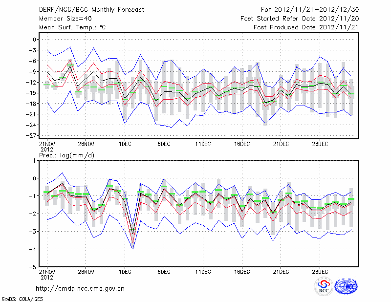 锡林浩特 (LAT:43.95 LON:116.07) 2012-11-21        预测
