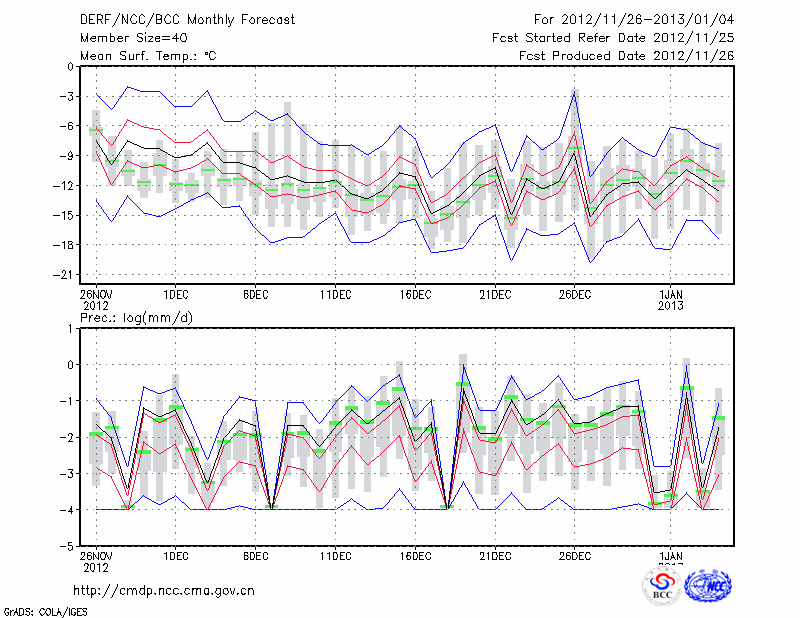 乌兰浩特 (LAT:46.08 LON:122.05) 2012-11-26        预测