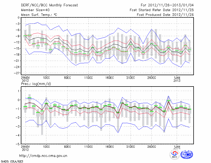哈 尔 滨 (LAT:45.75 LON:126.77) 2012-11-26        预测