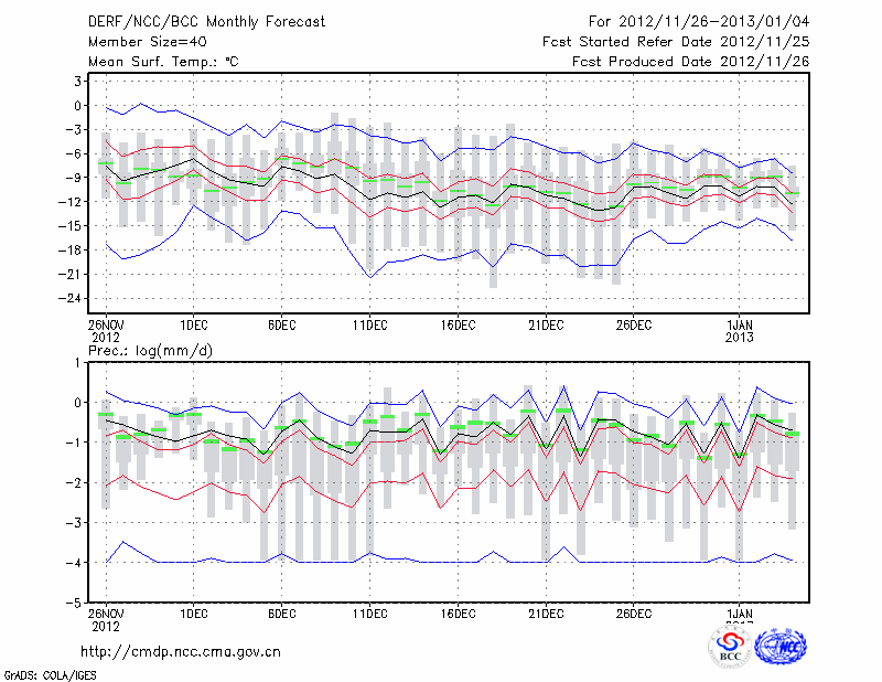 乌 苏 (LAT:44.43 LON:84.66) 2012-11-26        预测