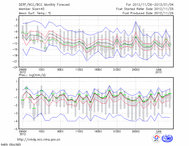 长 春 (LAT:43.90 LON:125.22) 2012-11-26        预测