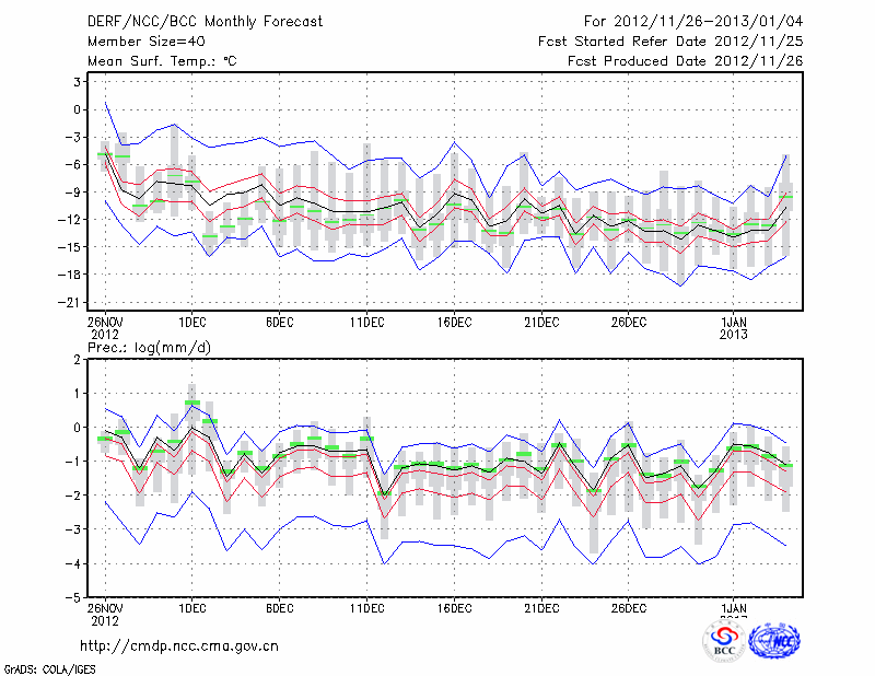 延 吉 (LAT:42.88 LON:129.47) 2012-11-26        预测