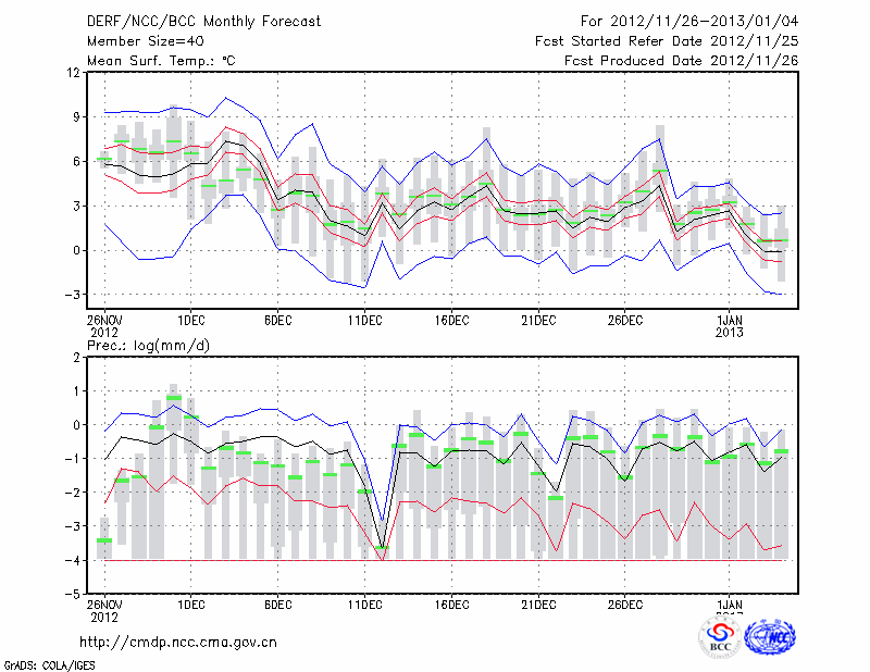 青 岛 (LAT:36.07 LON:120.33) 2012-11-26        预测
