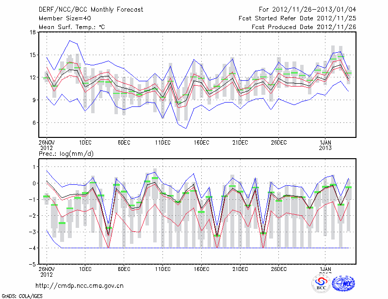 西 昌 (LAT:27.90 LON:102.27) 2012-11-26        预测