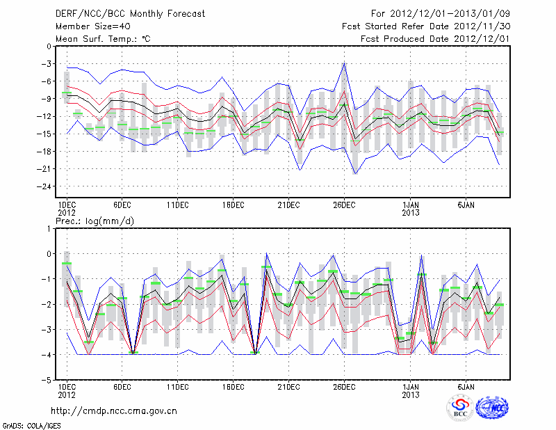 乌兰浩特 (LAT:46.08 LON:122.05) 2012-12-01        预测
