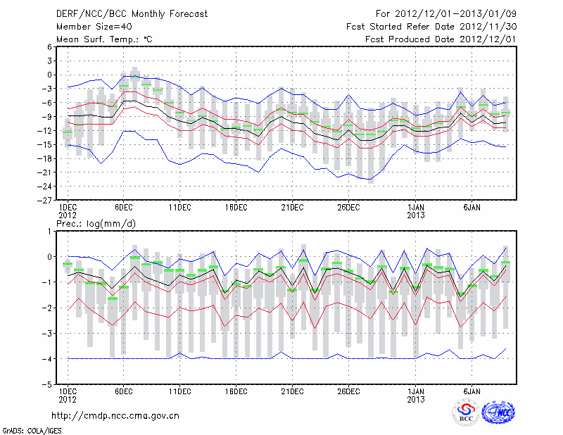 乌 苏 (LAT:44.43 LON:84.66) 2012-12-01        预测