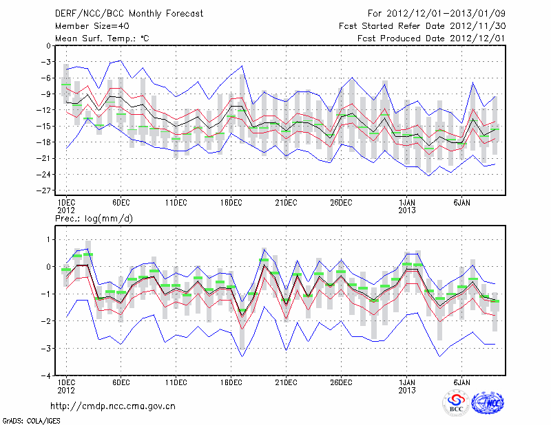 牡 丹 江 (LAT:44.57 LON:129.60) 2012-12-01        预测