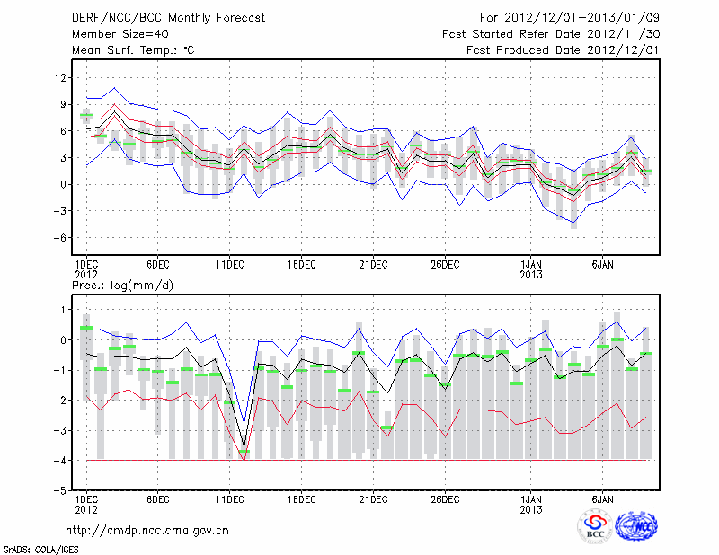 青 岛 (LAT:36.07 LON:120.33) 2012-12-01        预测