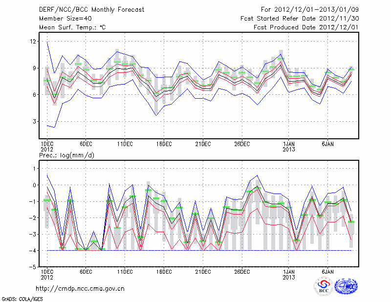 丽 江 (LAT:26.83 LON:100.47) 2012-12-01        预测