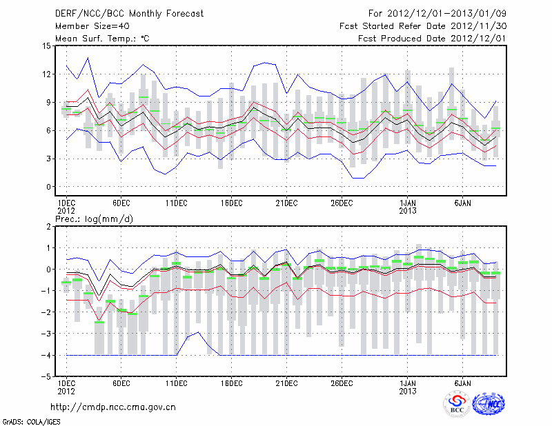 芷 江 (LAT:27.45 LON:109.68) 2012-12-01        预测