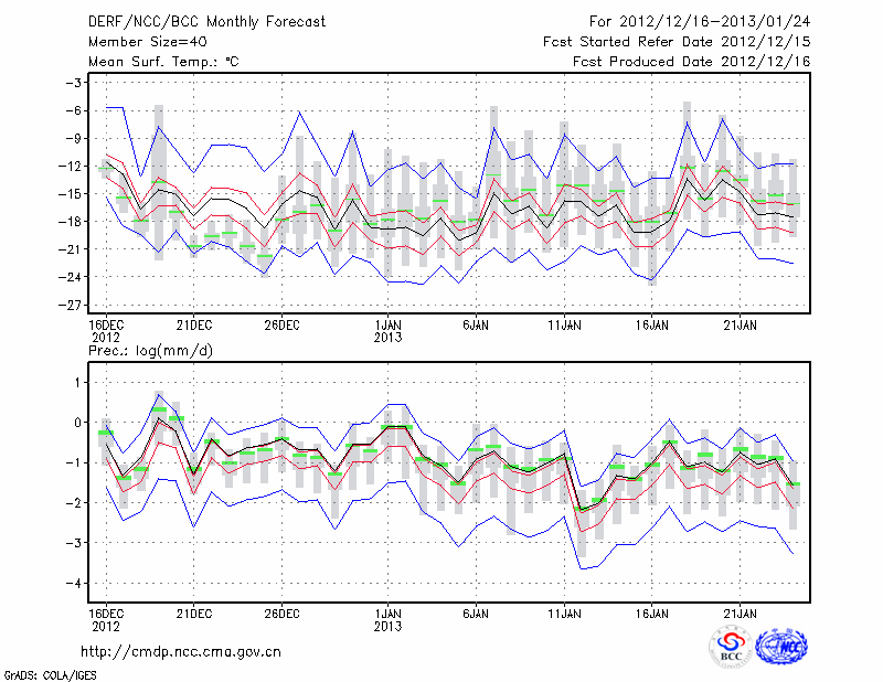 牡 丹 江 (LAT:44.57 LON:129.60) 2012-12-16        预测