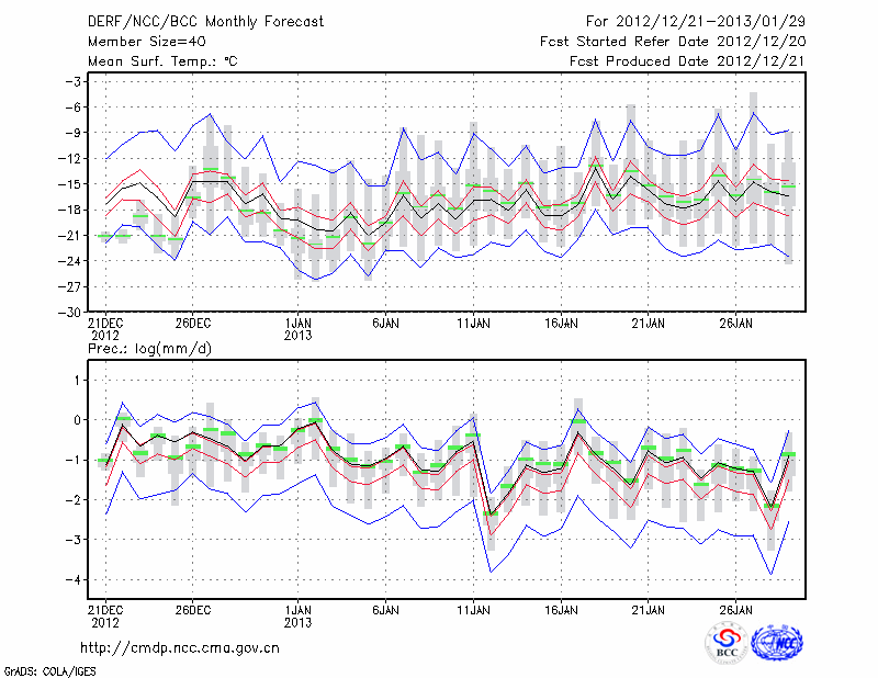 牡 丹 江 (LAT:44.57 LON:129.60) 2012-12-21        预测