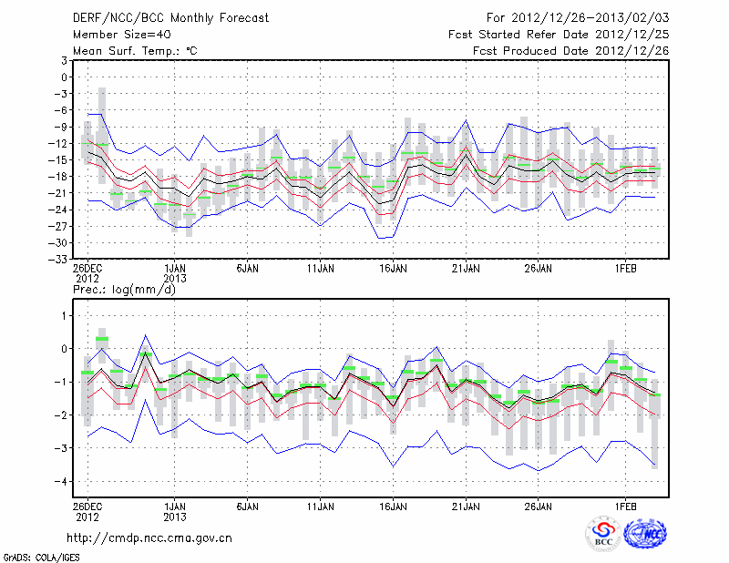 哈 尔 滨 (LAT:45.75 LON:126.77) 2012-12-26        预测