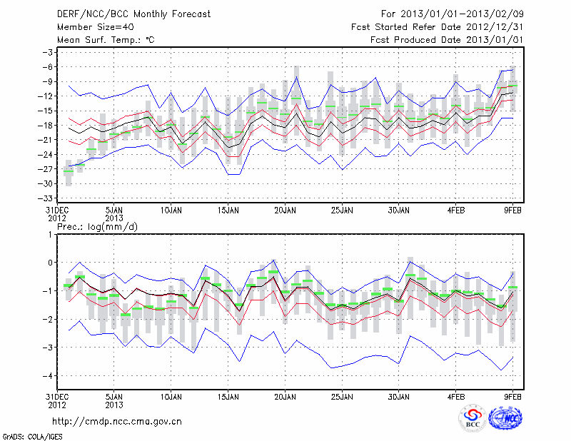 哈 尔 滨 (LAT:45.75 LON:126.77) 2013-01-01        预测