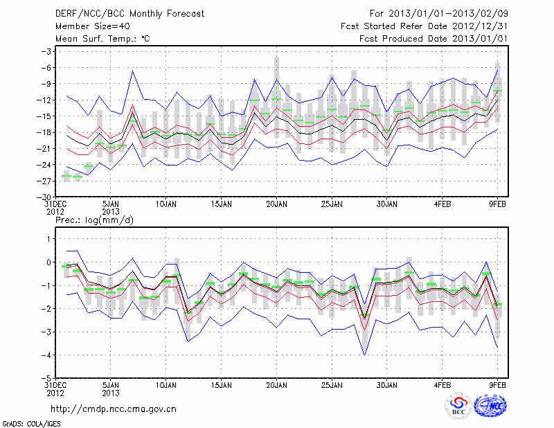 牡 丹 江 (LAT:44.57 LON:129.60) 2013-01-01        预测