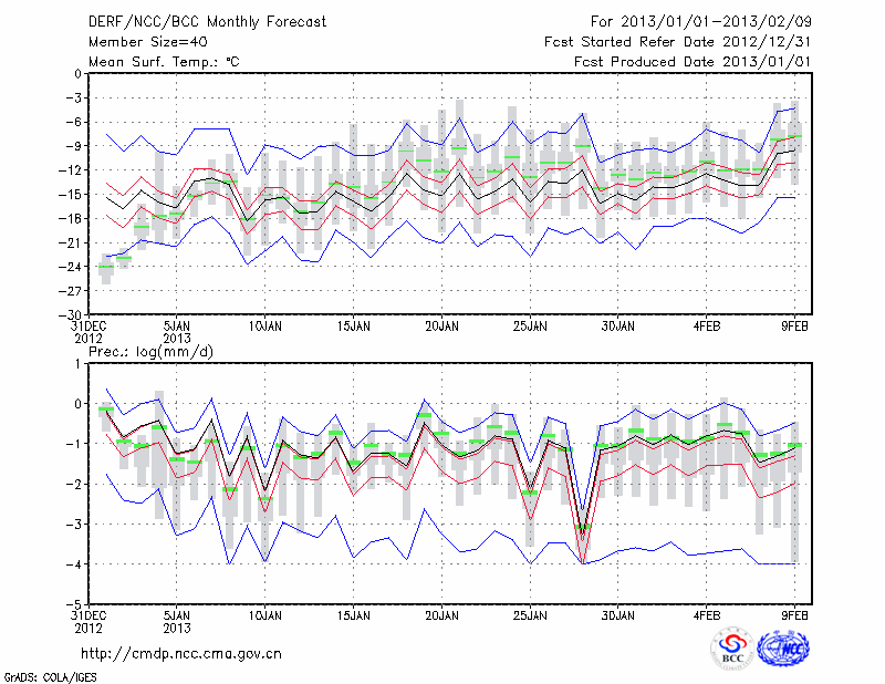 长 春 (LAT:43.90 LON:125.22) 2013-01-01        预测