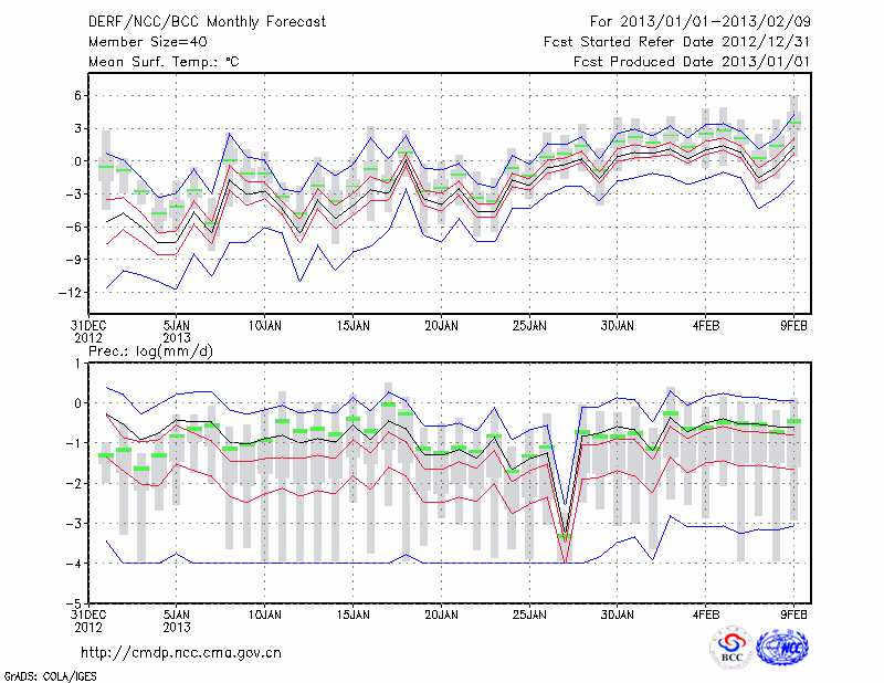 甘 孜 (LAT:31.62 LON:100.00) 2013-01-01        预测