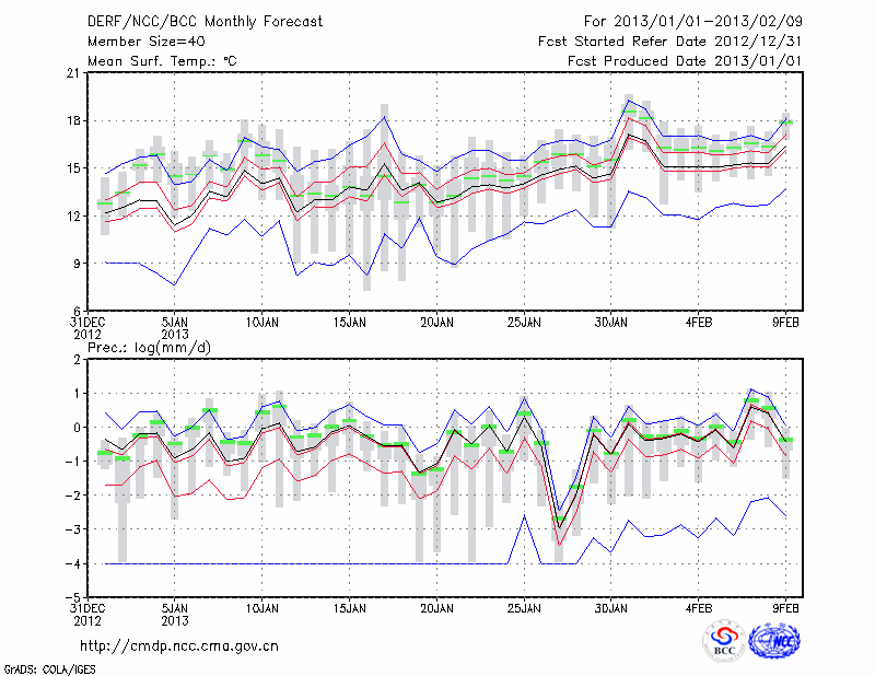 蒙 自 (LAT:23.38 LON:103.38) 2013-01-01        预测