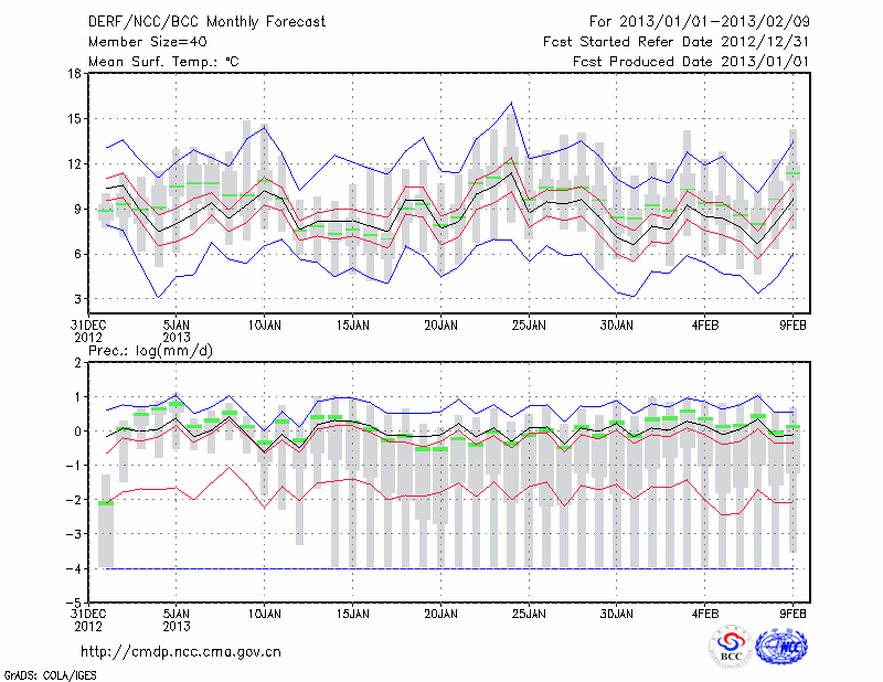 温 州 (LAT:28.02 LON:120.67) 2013-01-01        预测