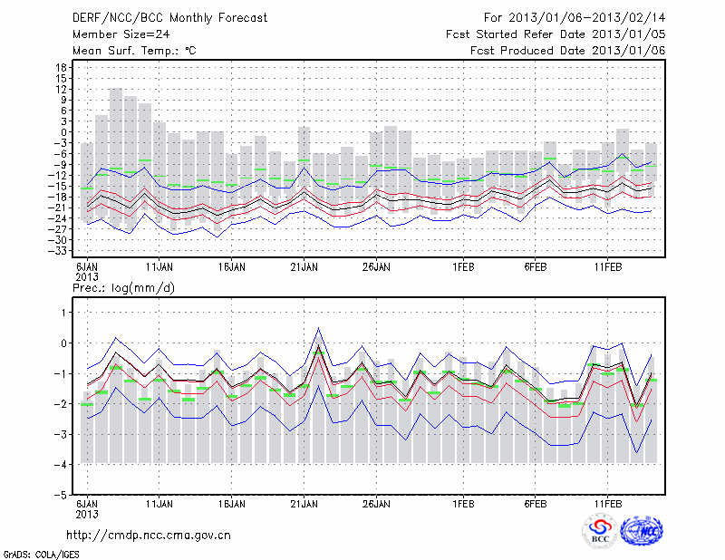 佳 木 斯 (LAT:46.49 LON:130.17) 2013-01-06        预测
