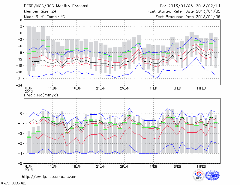 乌 苏 (LAT:44.43 LON:84.66) 2013-01-06        预测