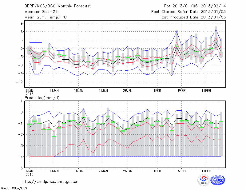西 峰 镇 (LAT:35.73 LON:107.63) 2013-01-06        预测