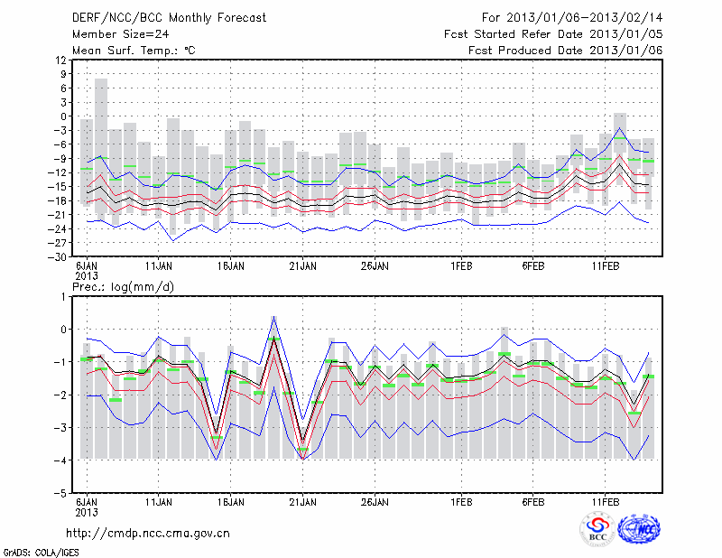 锡林浩特 (LAT:43.95 LON:116.07) 2013-01-06        预测
